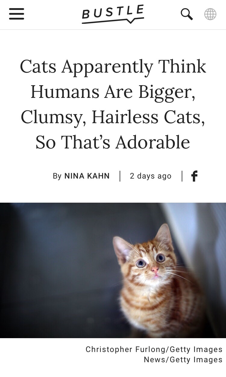 “Cats apparently think humans are bigger, clumsy, hairless cats, so that’s adorable” (Nina Khan, Bustle)